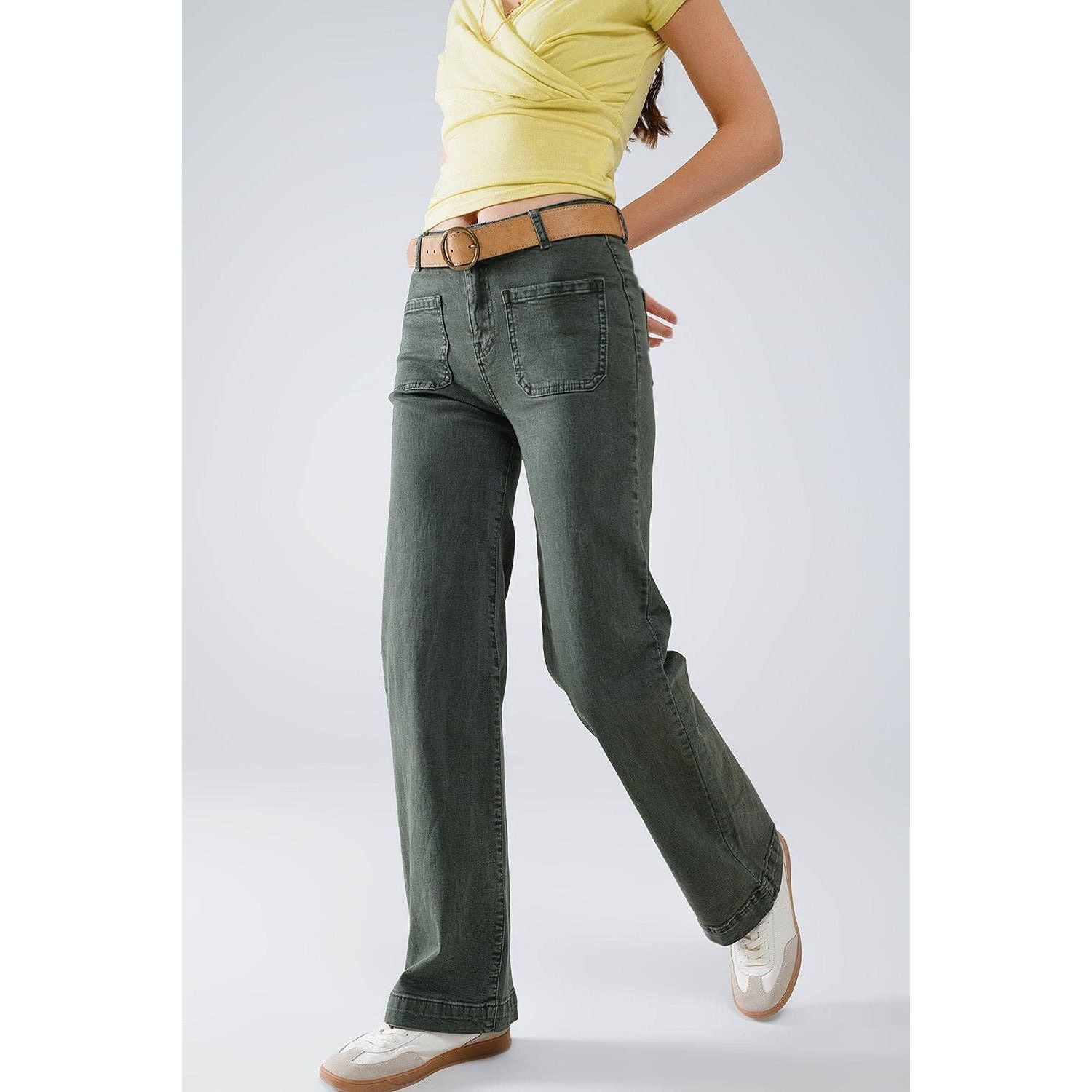 These full-length jeans feature a straight-leg fit. Made from comfy stretch denim, they come with five handy pockets and a zip closure. Designed to fit true to size, these dark khaki jeans hug your waist just right for a flattering look.
