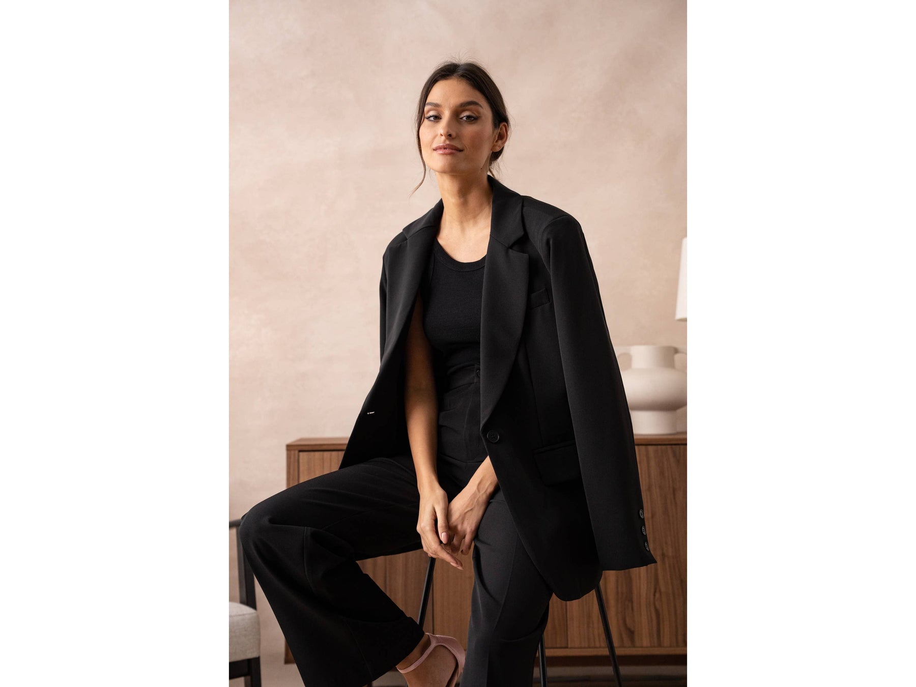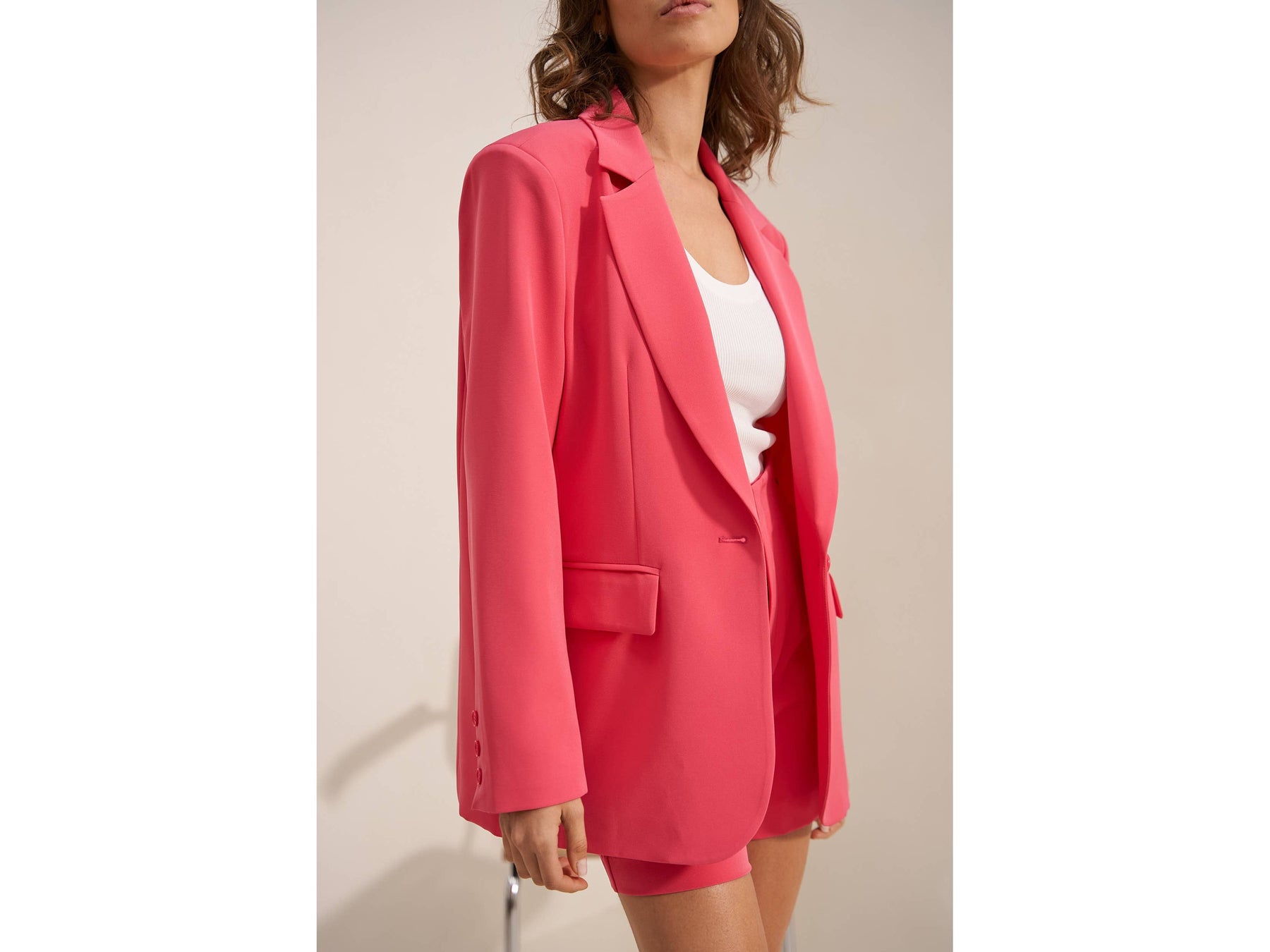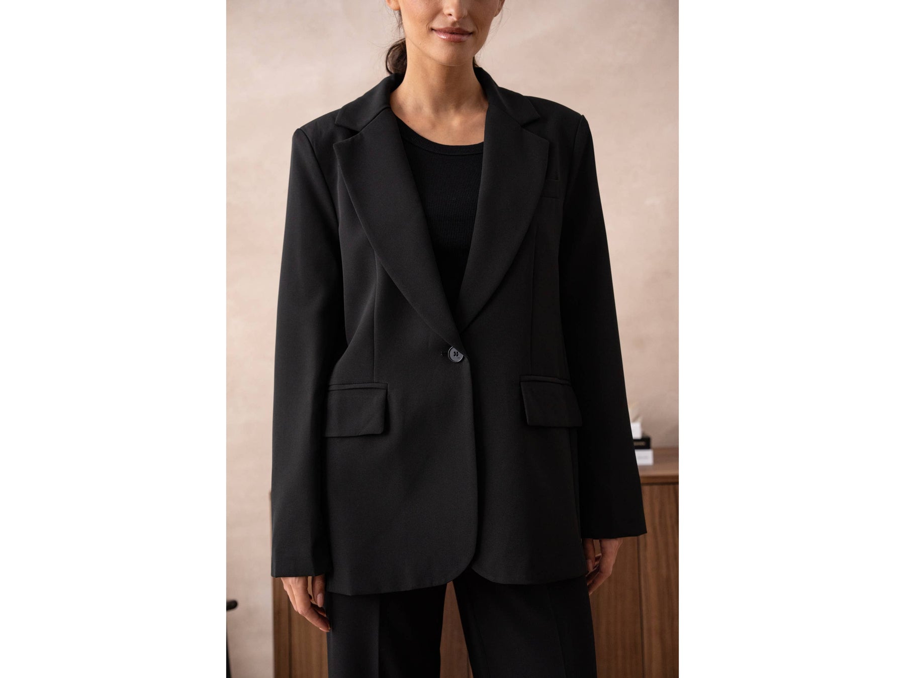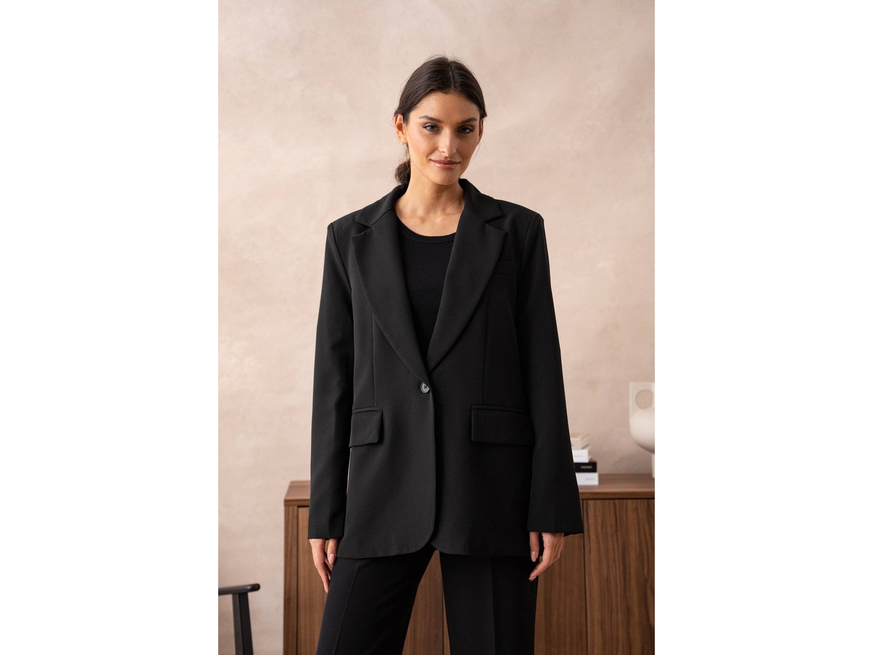 Meet your new favourite oversized blazer-roomy enough to move in, styled enough to turn heads, and secured with just one effortless button. Dress it up or down and own every room you walk into.