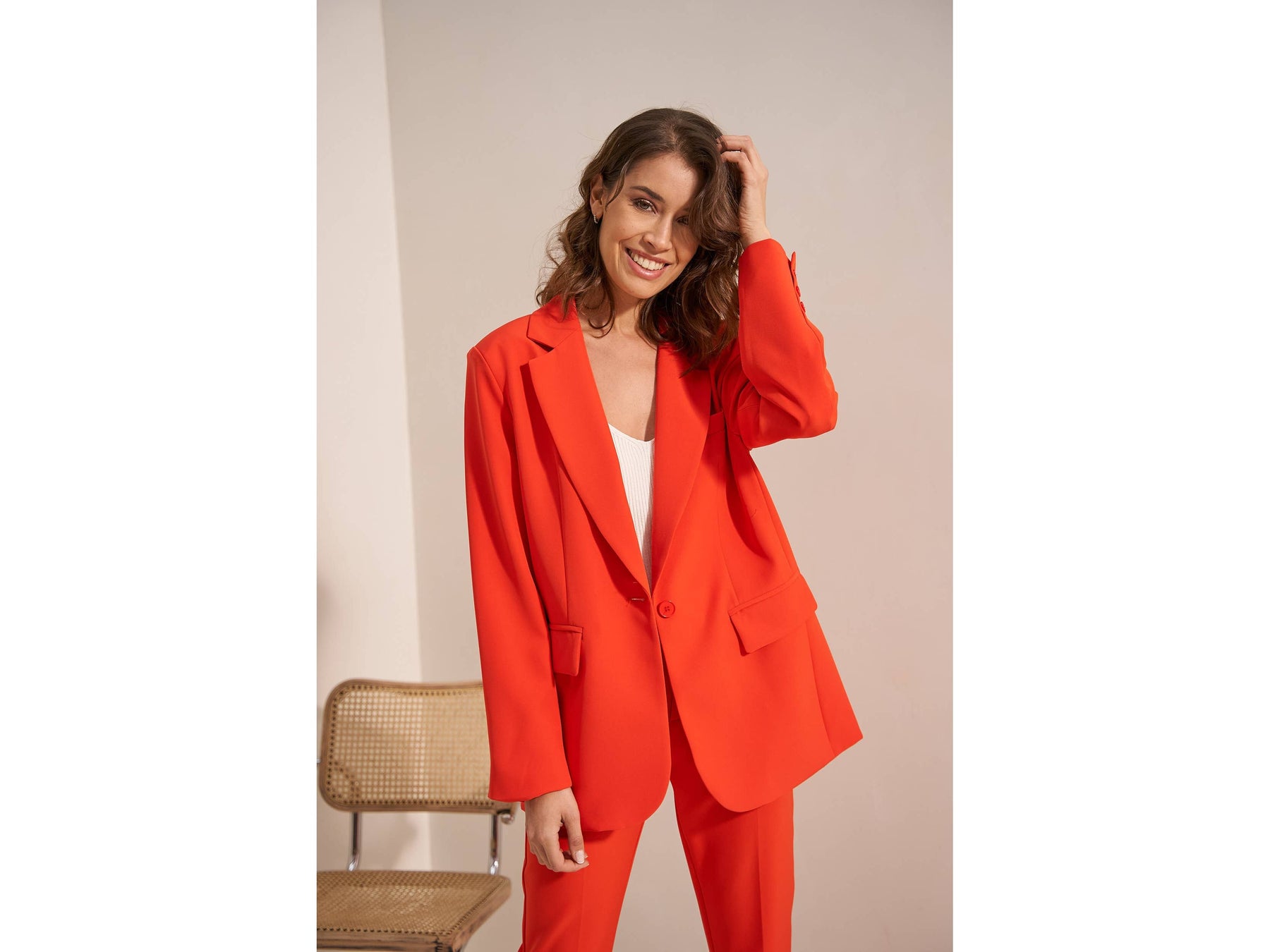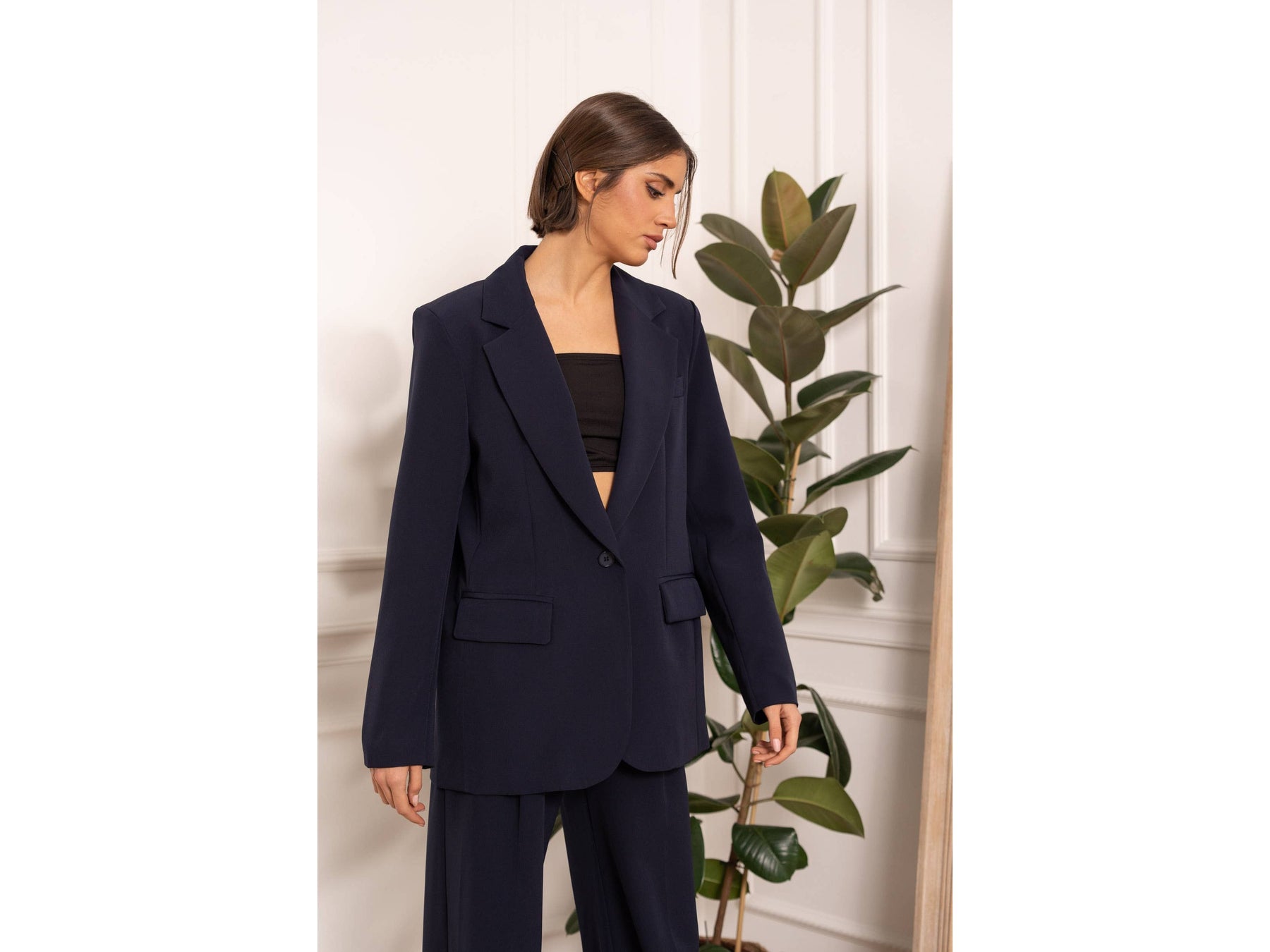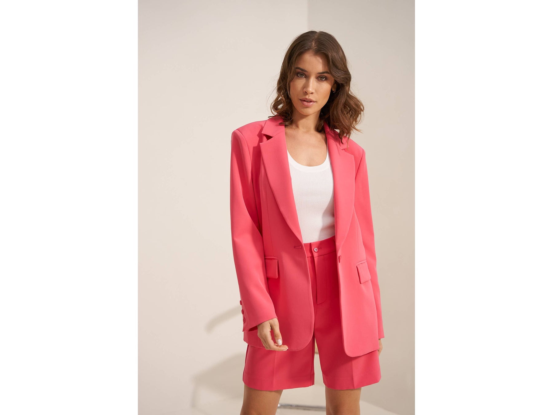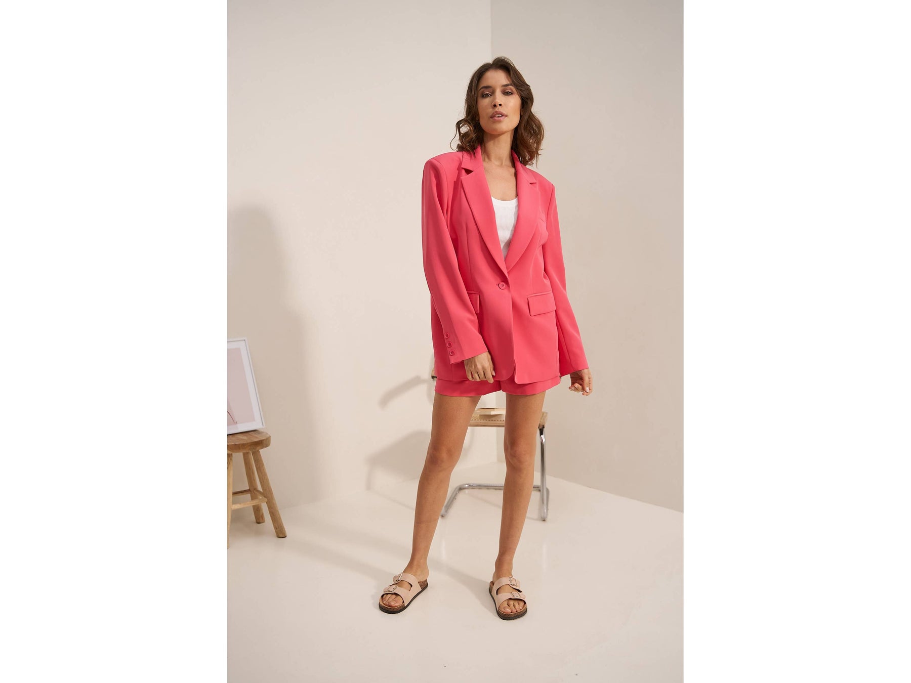 Meet your new favourite oversized blazer-roomy enough to move in, styled enough to turn heads, and secured with just one effortless button. Dress it up or down and own every room you walk into.