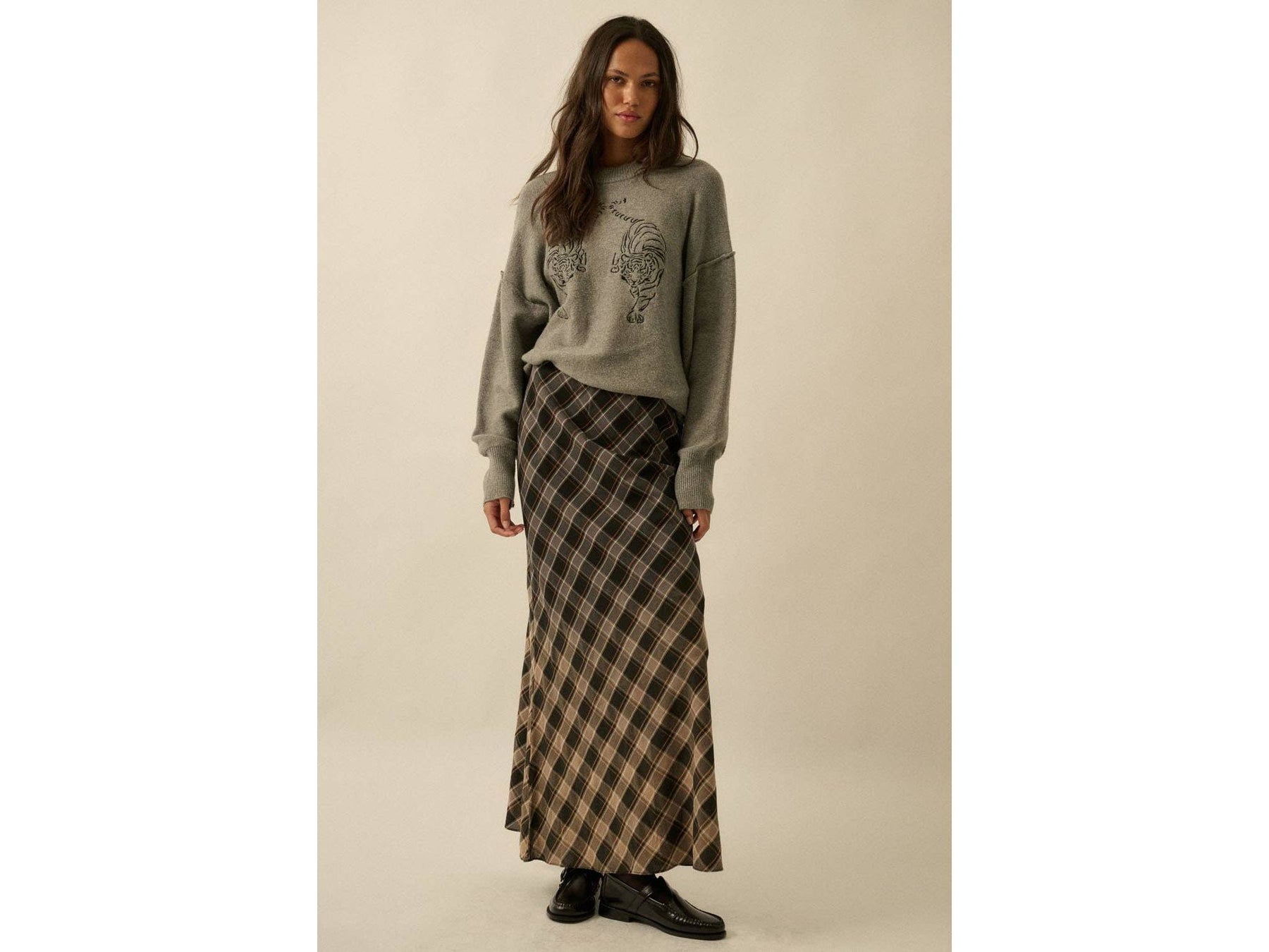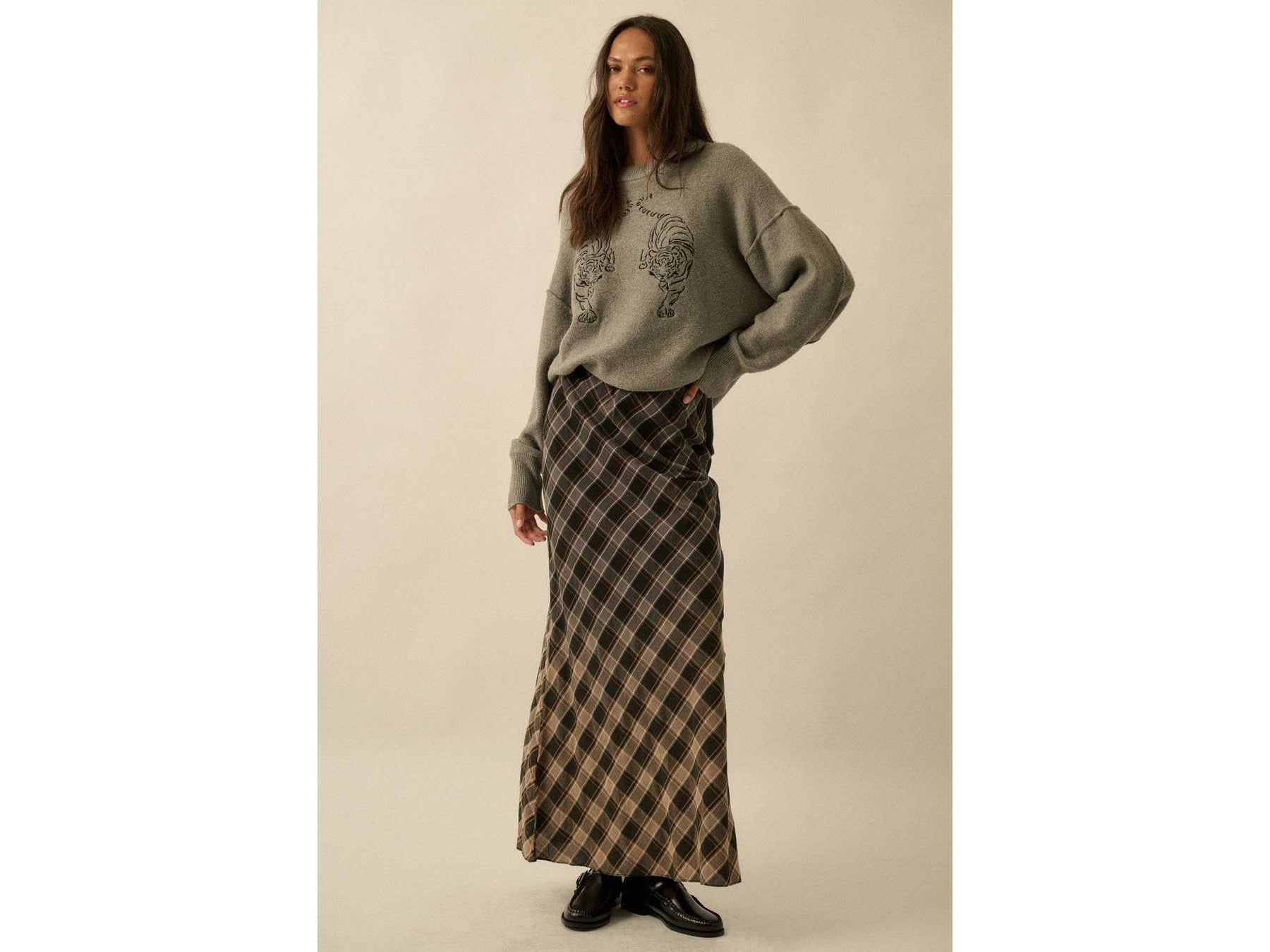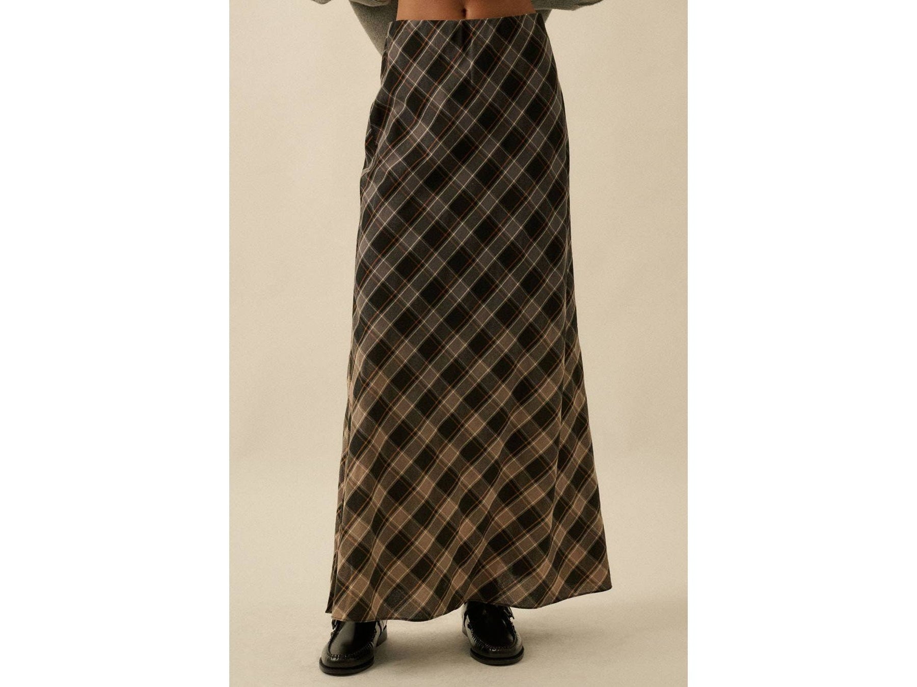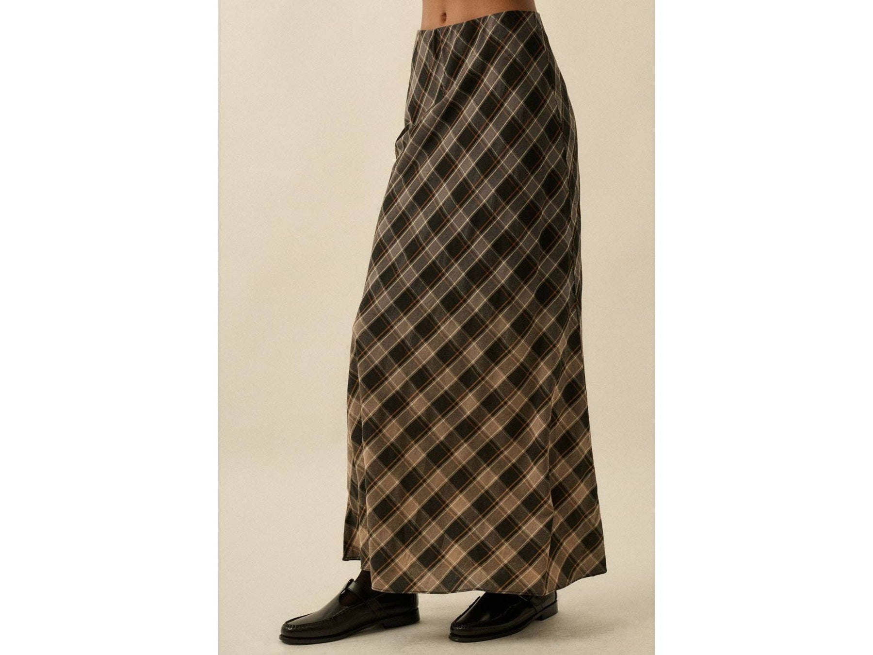 This playful plaid maxi skirt features a breezy bias-cut design and a dreamy ombre dip-dye effect. It sits comfortably with a hidden elastic waistband, offering a sleek, straight shape that flows to your ankles. Enjoy a relaxed fit that moves with you all day long.