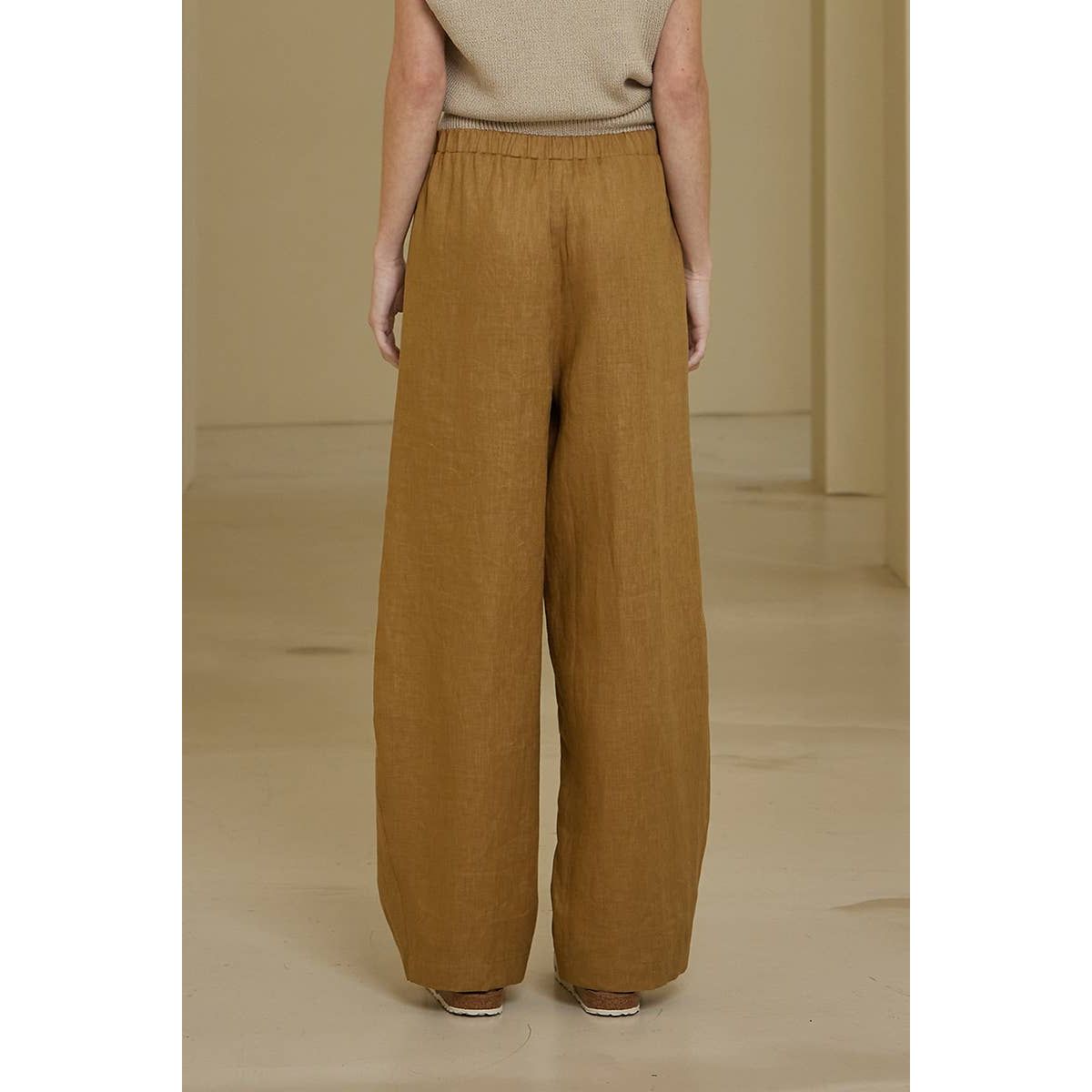 These 100% linen pants feature a playful wide-leg barrel silhouette with charming pleated inseams for a breezy, stylish look.