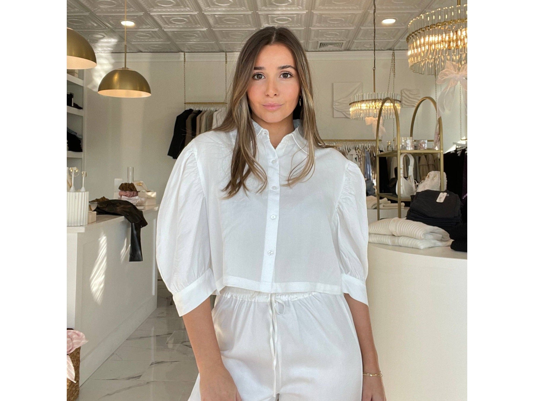 Make a bold move with the Bastille top - a cropped puff sleeve shirt designed to turn heads and steal the spotlight. This statement piece brings instant personality to any outfit, perfect for those who aren't afraid to stand out.