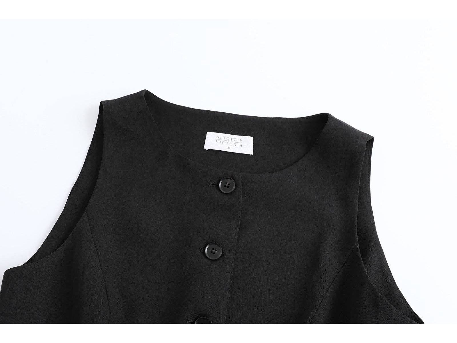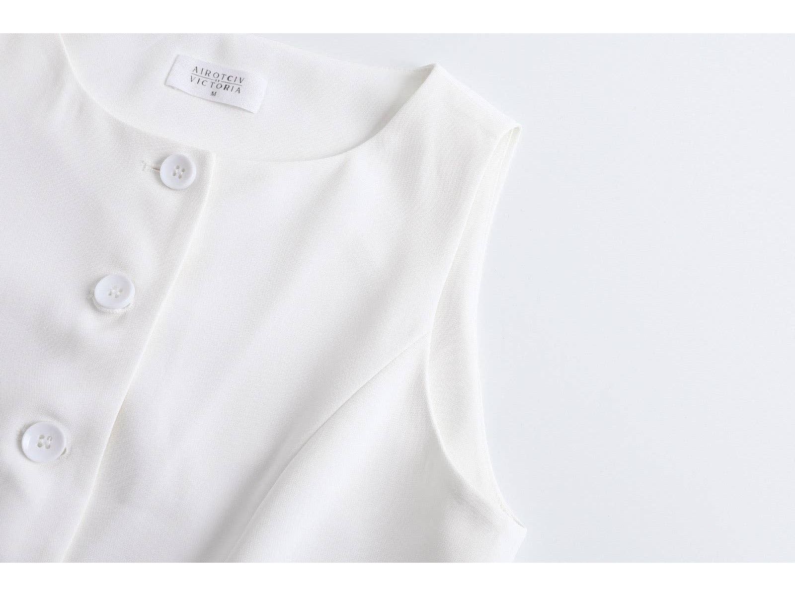 The Airotciv Daily Vest Top, designed for both comfort and timeless style. Perfect for dressing up or down, this versatile piece can be paired effortlessly with denim or our matching Daily Shorts or Trousers for a cohesive, chic look. Featuring a sleek button-down closure, a flared waist for a flattering silhouette, and a stylish tie-string detail at the back to cinch your waist to the perfect fit, it comes in classic black and white. Whether you're heading out or lounging in style, this vest top adds a touch of elegance to any ensemble.