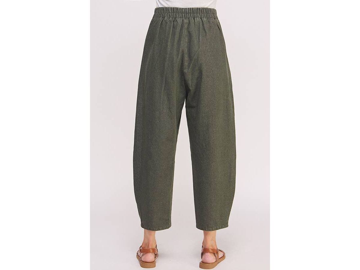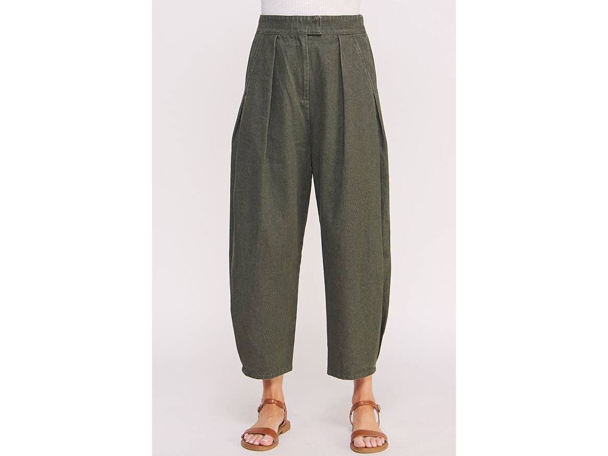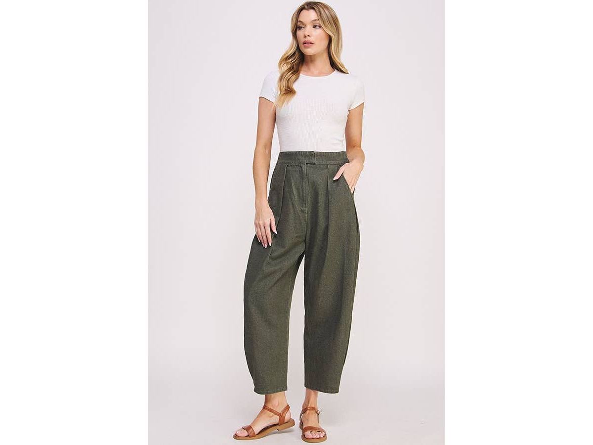 These high-waisted trousers feature playful pleats and a relaxed, baggy fit that hits just above the ankle. They come with convenient side hip pockets, a comfy elastic waistband at the back, and a hook & eye with zipper closure to keep things secure and stylish.