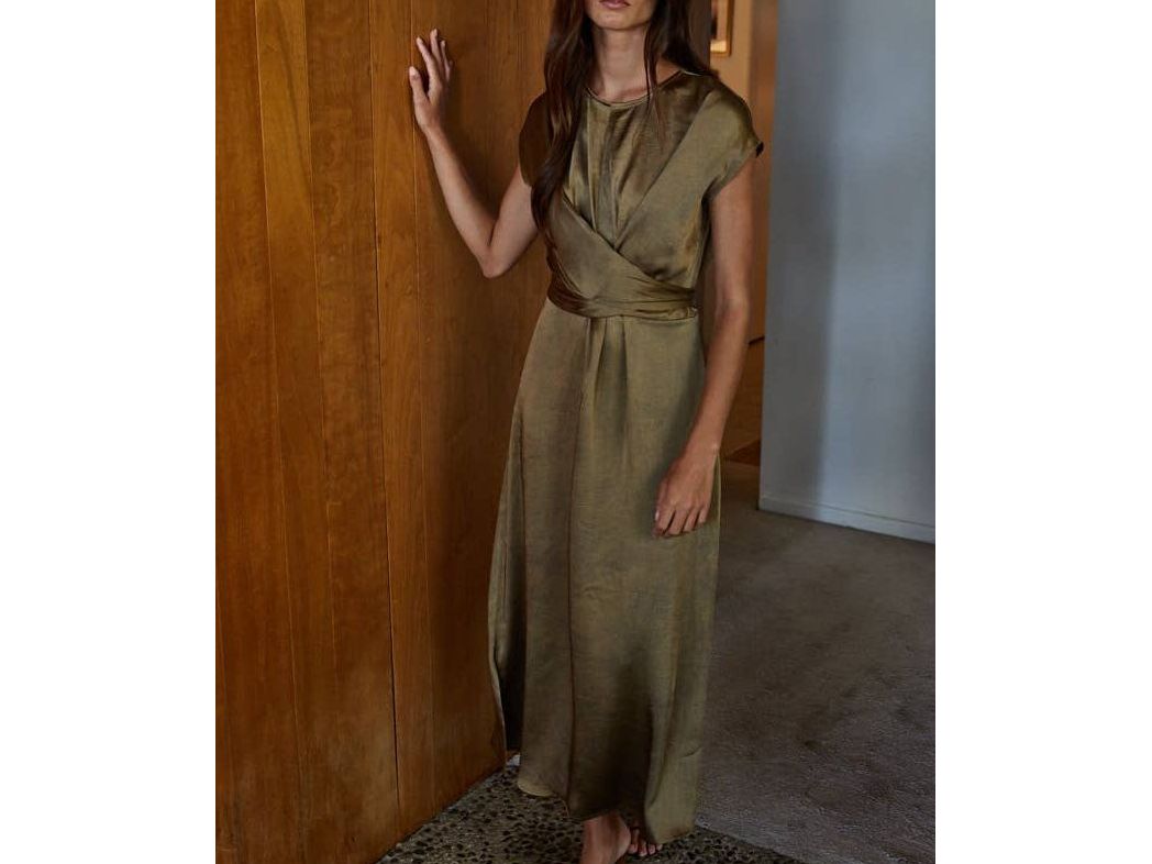 Effortless elegance meets modern edge in this sleek maxi dress. The crossover tie-front detail adds a flirty touch while the round neckline keeps things timeless. Crafted from smooth woven polyester satin, it drapes beautifully and moves with you. Sleeveless design is perfect for layering or going bare-shouldered, while the back zipper ensures an easy fit. Practical side slits let you stride with confidence. Your new go-to for occasions that call for a little sass and sophistication.