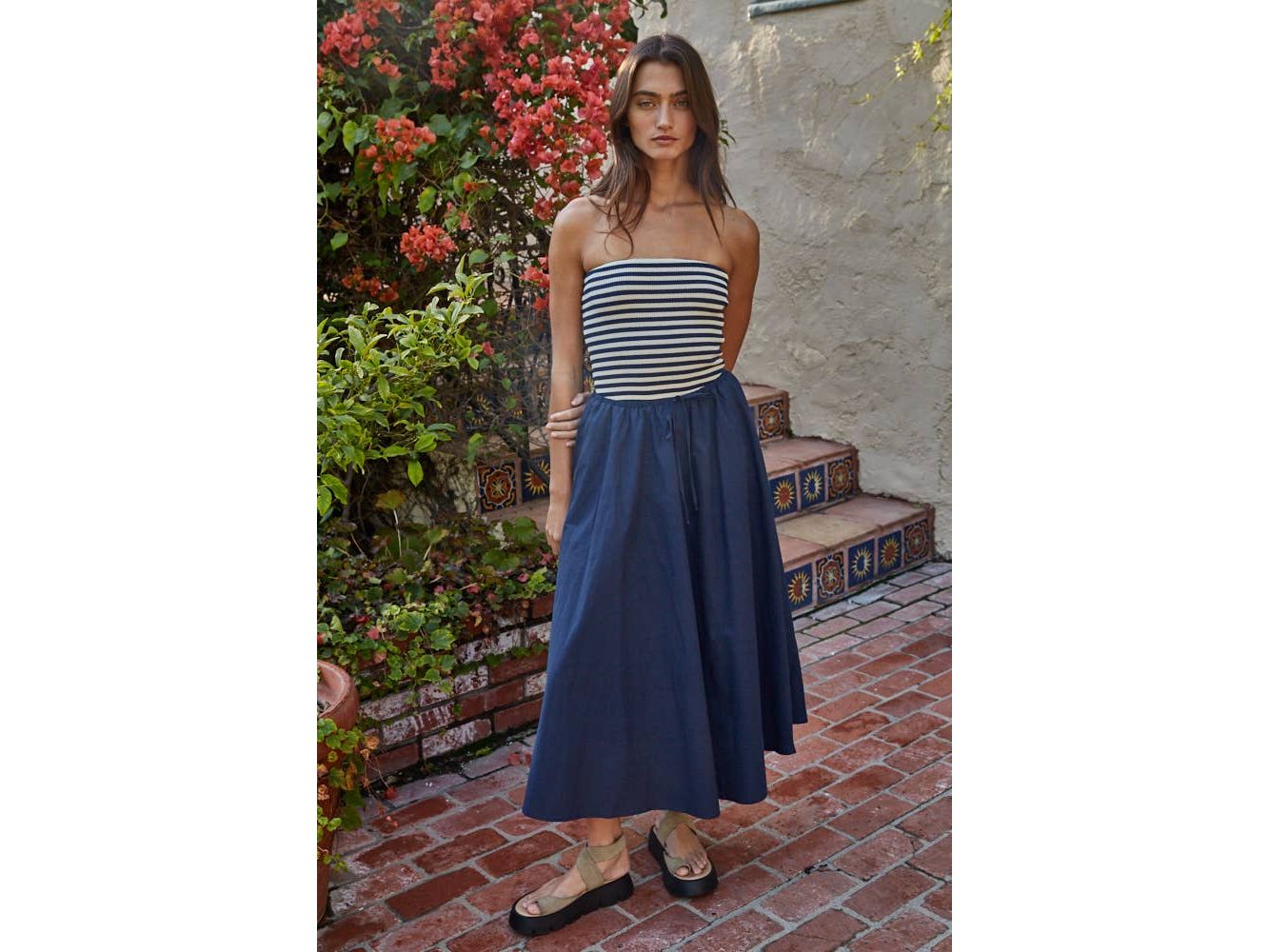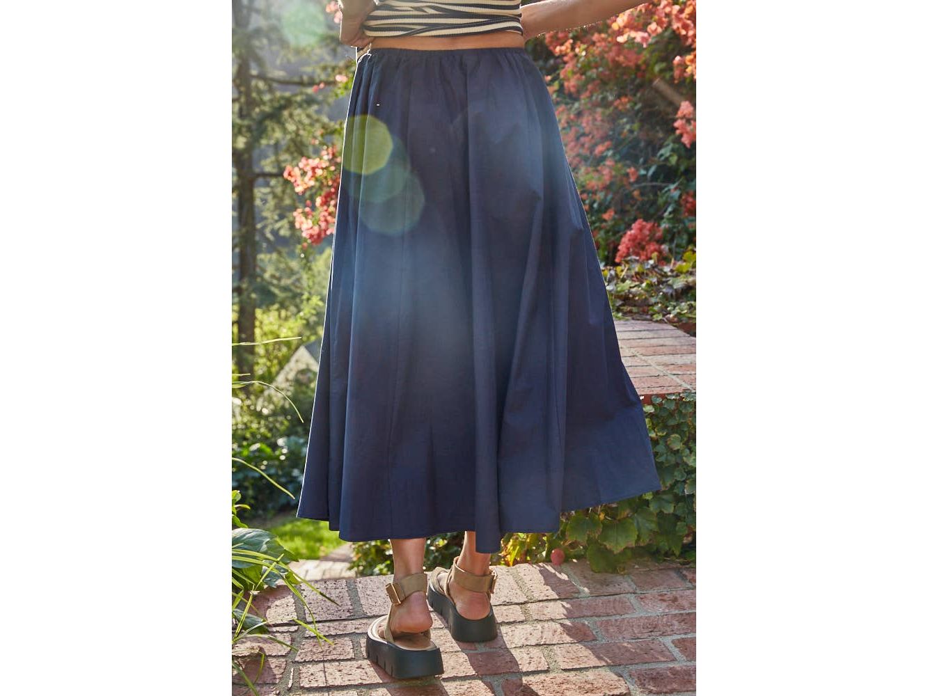 Effortlessly chic and undeniably comfortable, this woven cotton midi skirt is your new go-to for everything from casual coffee dates to weekend adventures. The adjustable drawstring waist ensures the perfect fit every time, while the flared silhouette skims beautifully over the hips and creates a flattering, twirl-worthy shape. Crafted from breathable woven cotton, it's the kind of piece that feels as good as it looks—versatile enough to dress up with heels or keep it relaxed with sneakers. Pure, playful elegance.
