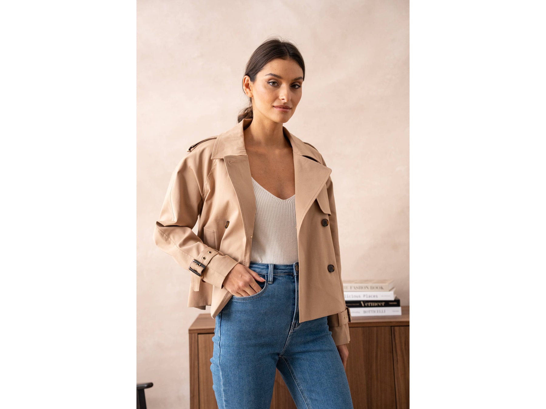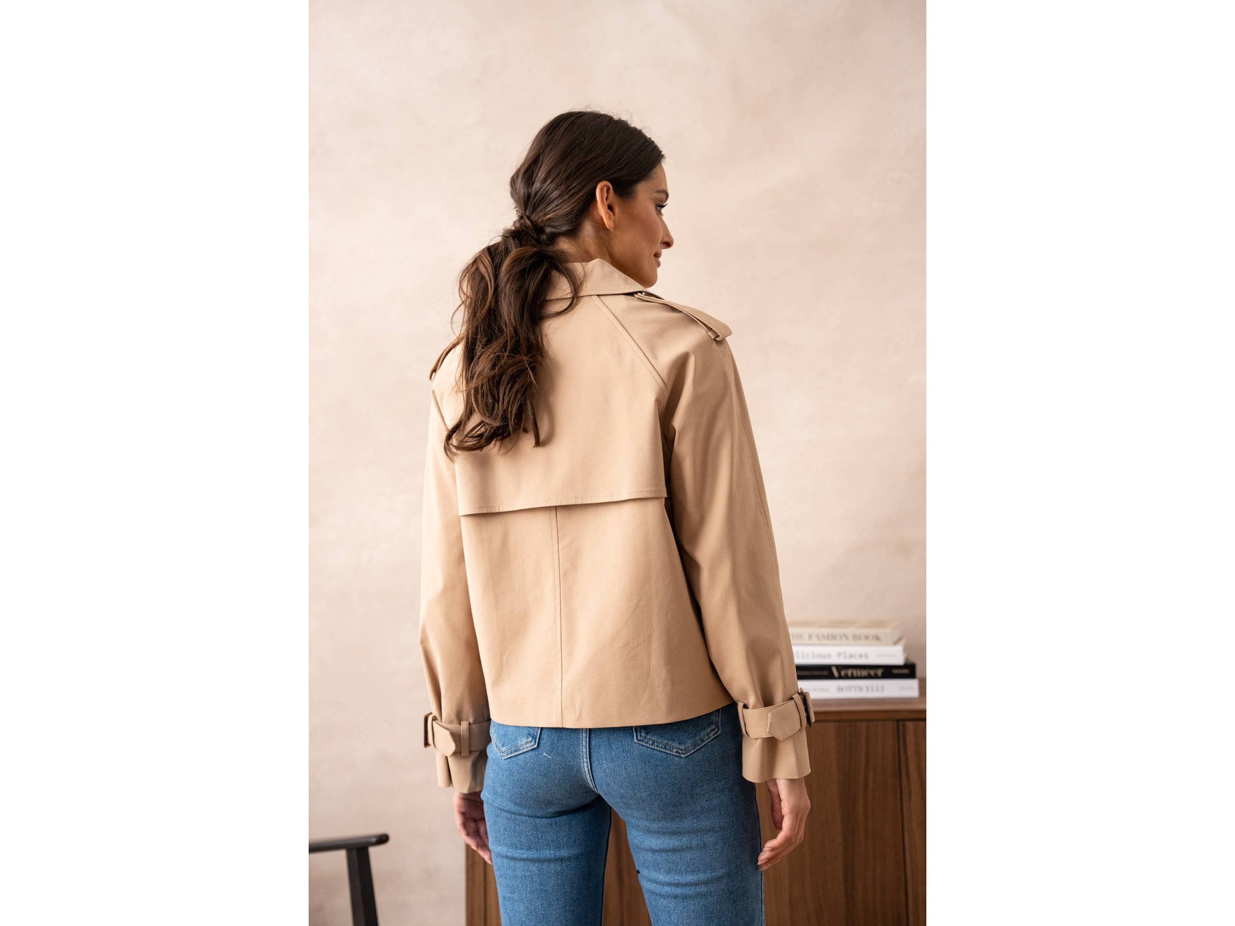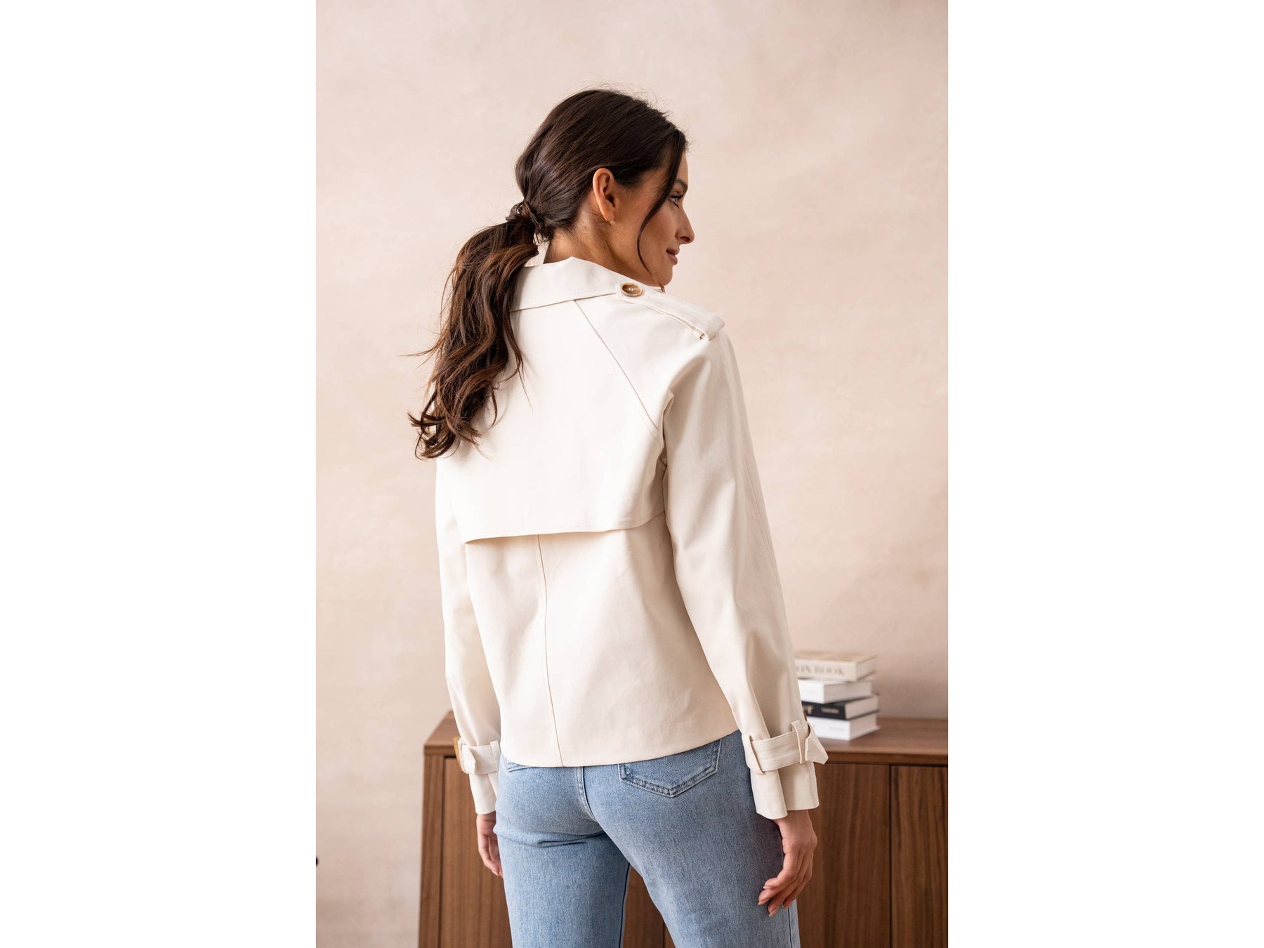 A cropped take on the classic trench - tailored in a breathable cotton blend that moves with you. Perfect for layering over everything from dresses to denim, this shortened silhouette brings modern edge to timeless style.
