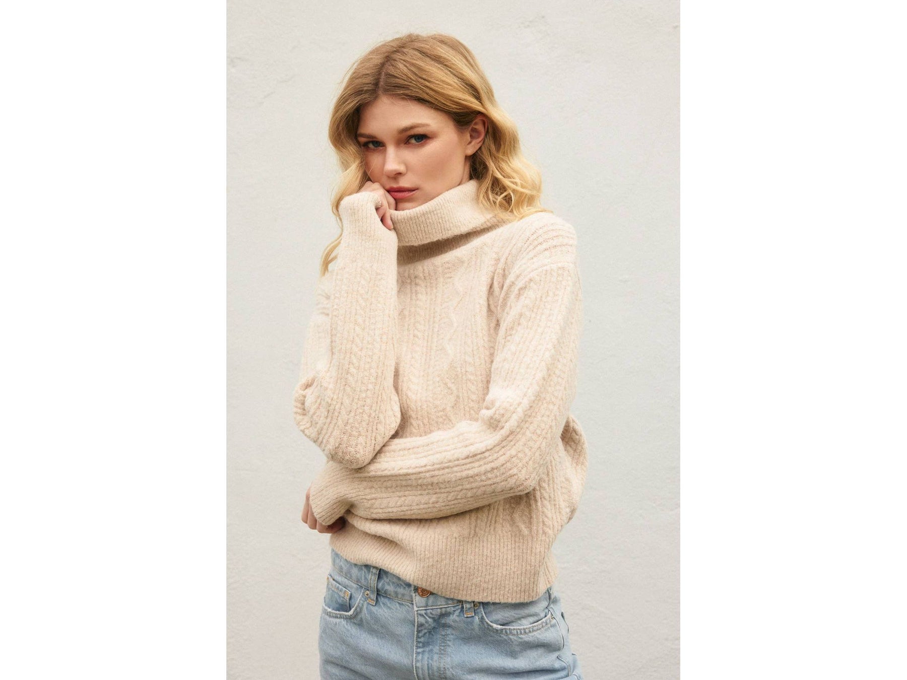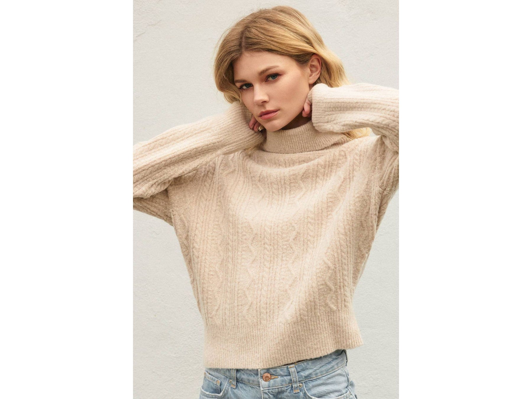 Fluffy Cable Knit Turtleneck