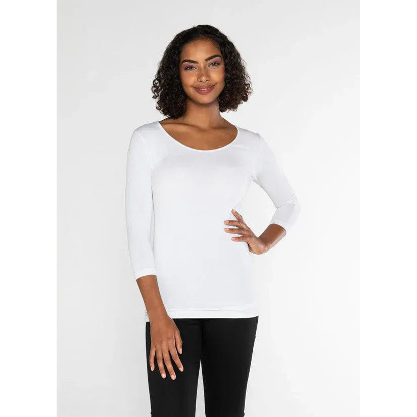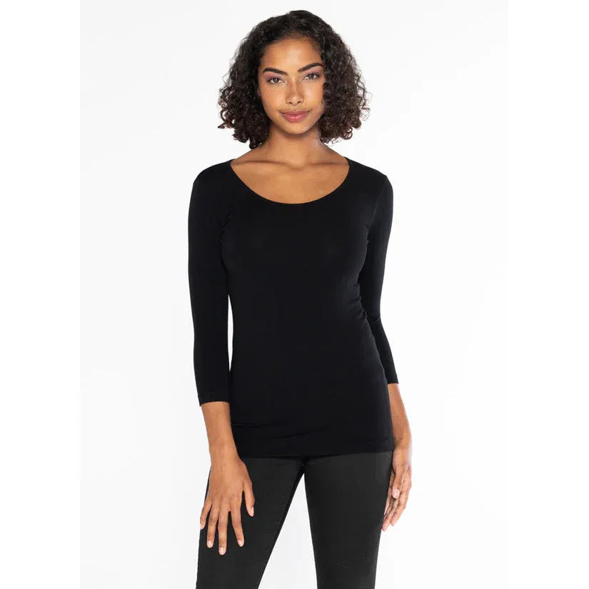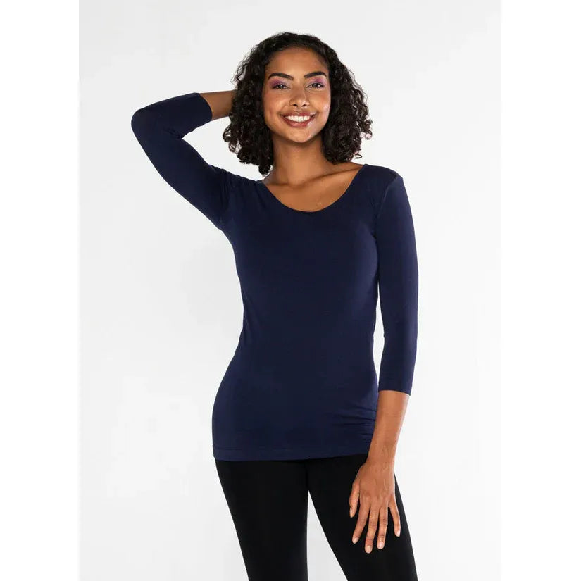 Looking for the perfect middle ground between a cap sleeve and a long sleeve? Our Bamboo 3/4 Sleeve Top has you covered with its delightfully soft bamboo fabric and just-right sleeve length. Cozy, breathable, and a little stretch to keep you moving comfortably all day long!