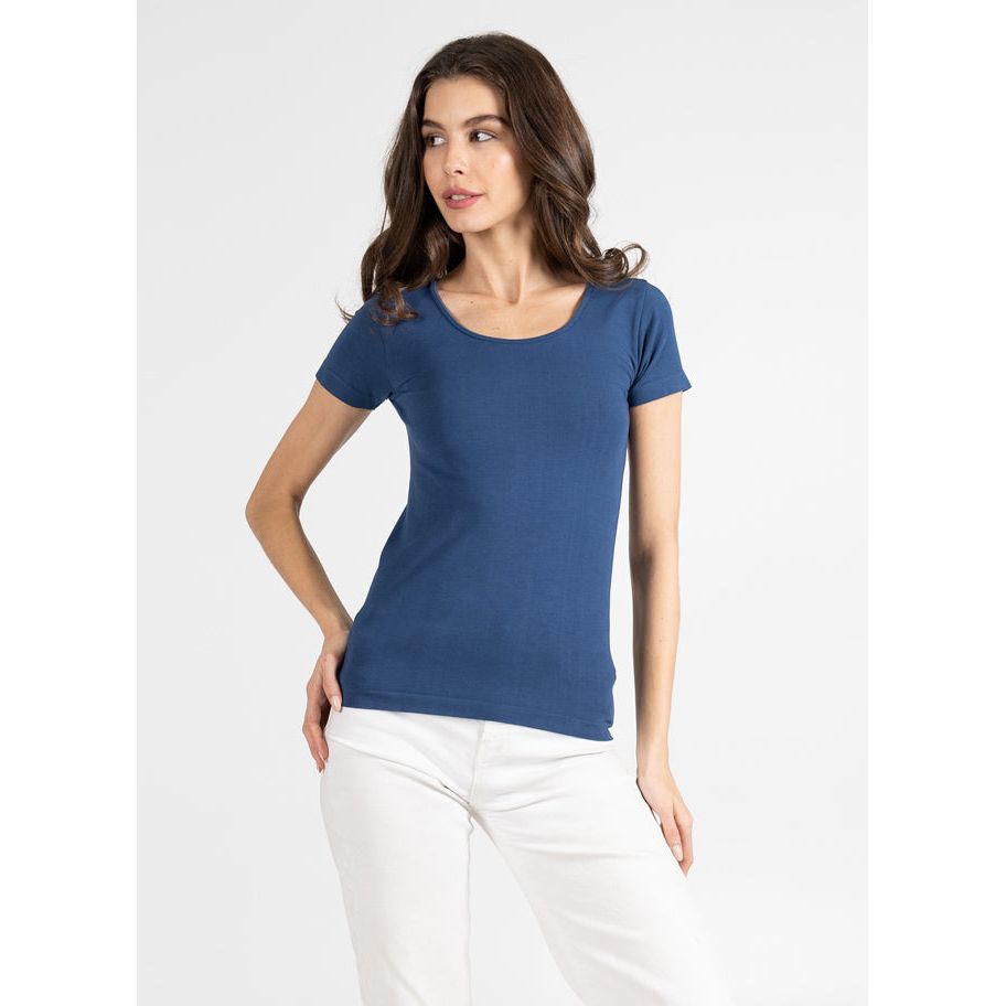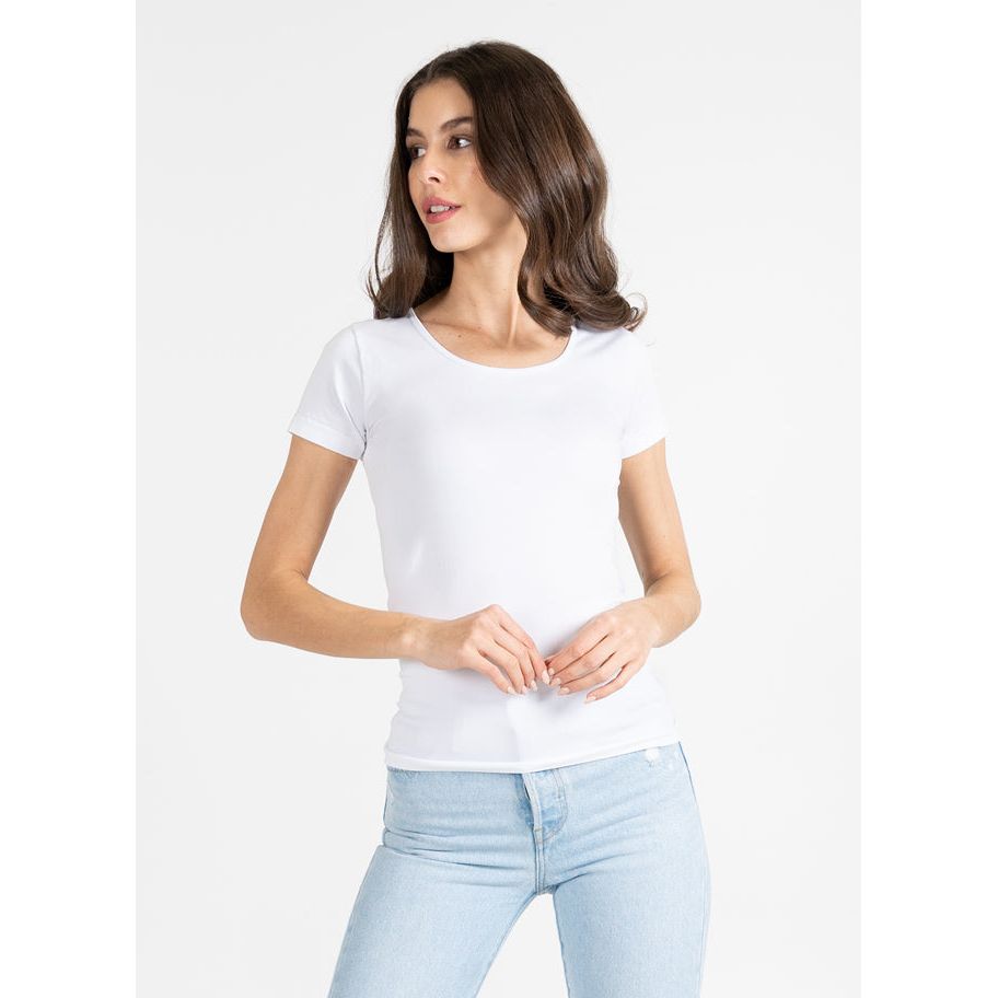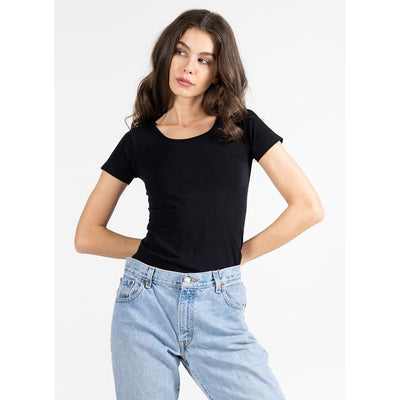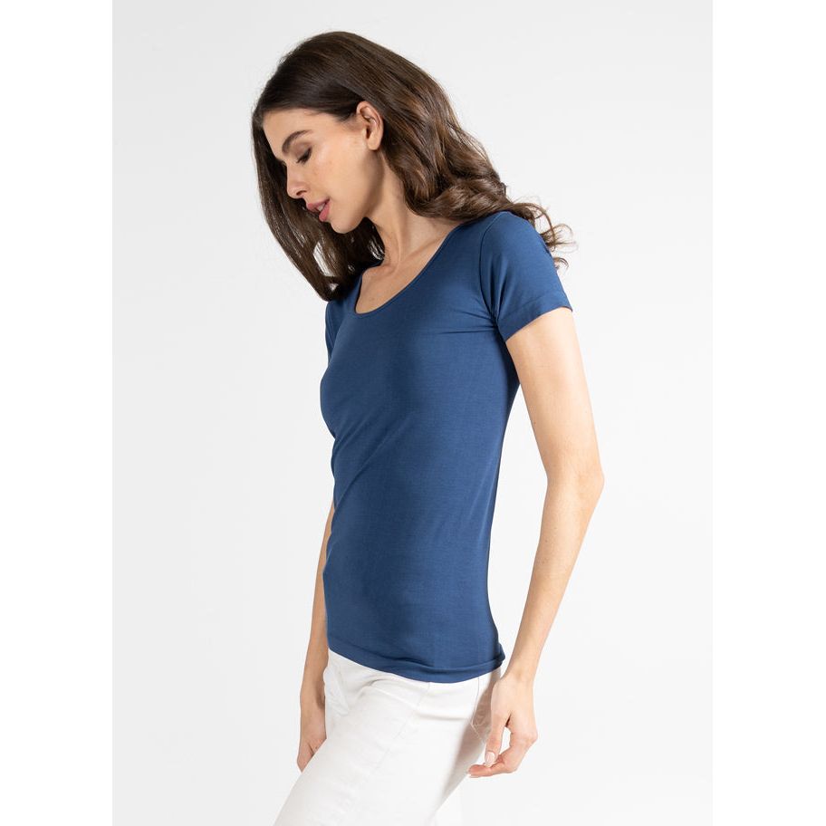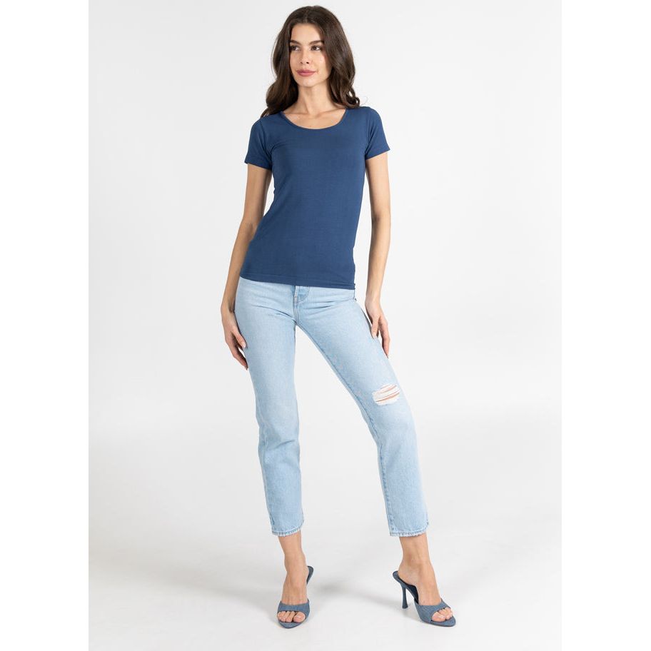 This Bamboo Short Sleeve Scoop Neck Top combines a playful style with all-day comfort. Its scoop-neck front pairs perfectly with a high back for a fresh twist on your casual look. Made from soft bamboo rayon blended with nylon and spandex, it offers a lightweight, stretchy feel that moves with you. Perfect for sunny days or layering up, this tee brings easy, breezy vibes wherever you go.